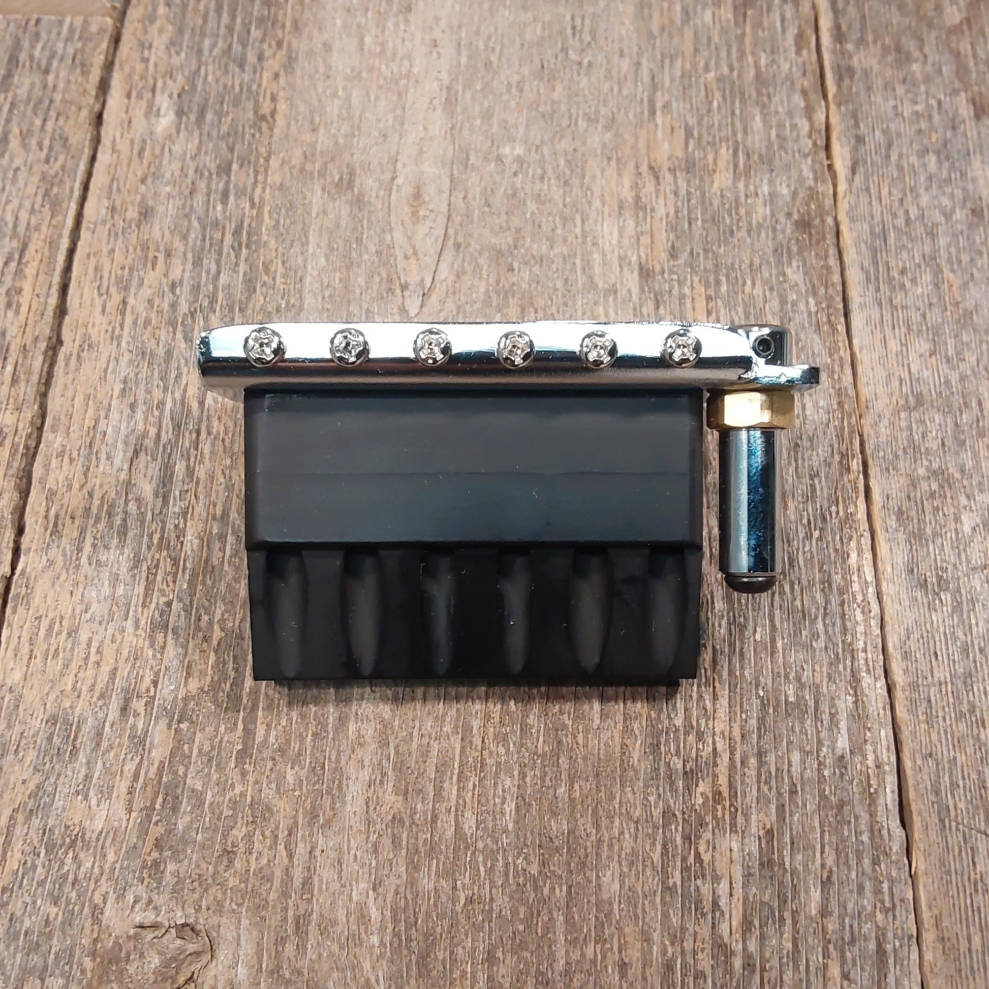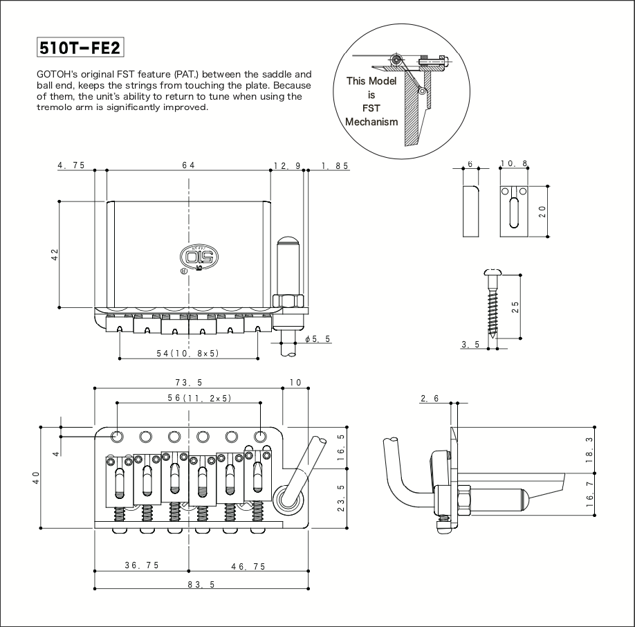 This bridge system is a drop in replacement for vintage modern trems - specifically 6 hole systems with wider spacing. The most critical dimension on this one is the spacing of the mounting holes - at 56mm. We find this doesn't fit Squiers or narrower true vintage style trems. For that, the Babicz narrow spacing system will be your best bet.
