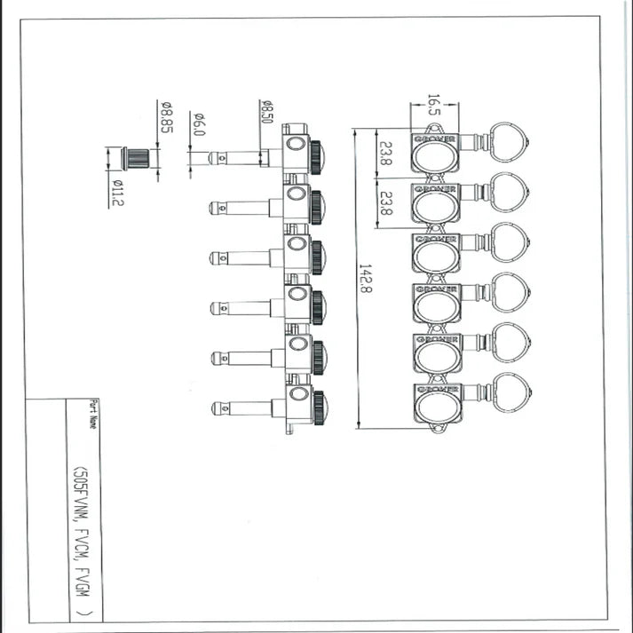 The 505FV series design allows you to upgrade your vintage Fender® tuners. Improved is the 18:1 gear ratio. along with a more modern style locking tuner without making ANY modifications to your guitar. The overlapping ear design allows you to utilize the existing screw holes and the use of push-in bushings, rather than screw-in, means no modifications have to be made to the post holes.