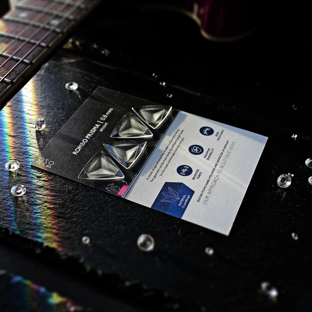 Rombo picks are uniquely designed for clean playing, superior grip, and excellent tune. Begun on Kickstarter in Germany by a husband and wife, Rombo has many innovative designs and features. You will fall in love with one of these picks. For both of us here, the Jade actually made our playing faster and cleaner, and we have many customers that won't play with anything else. The picks are made from an unusual material that is a relative of kevlar, so they last far longer than just about anything else on the market.