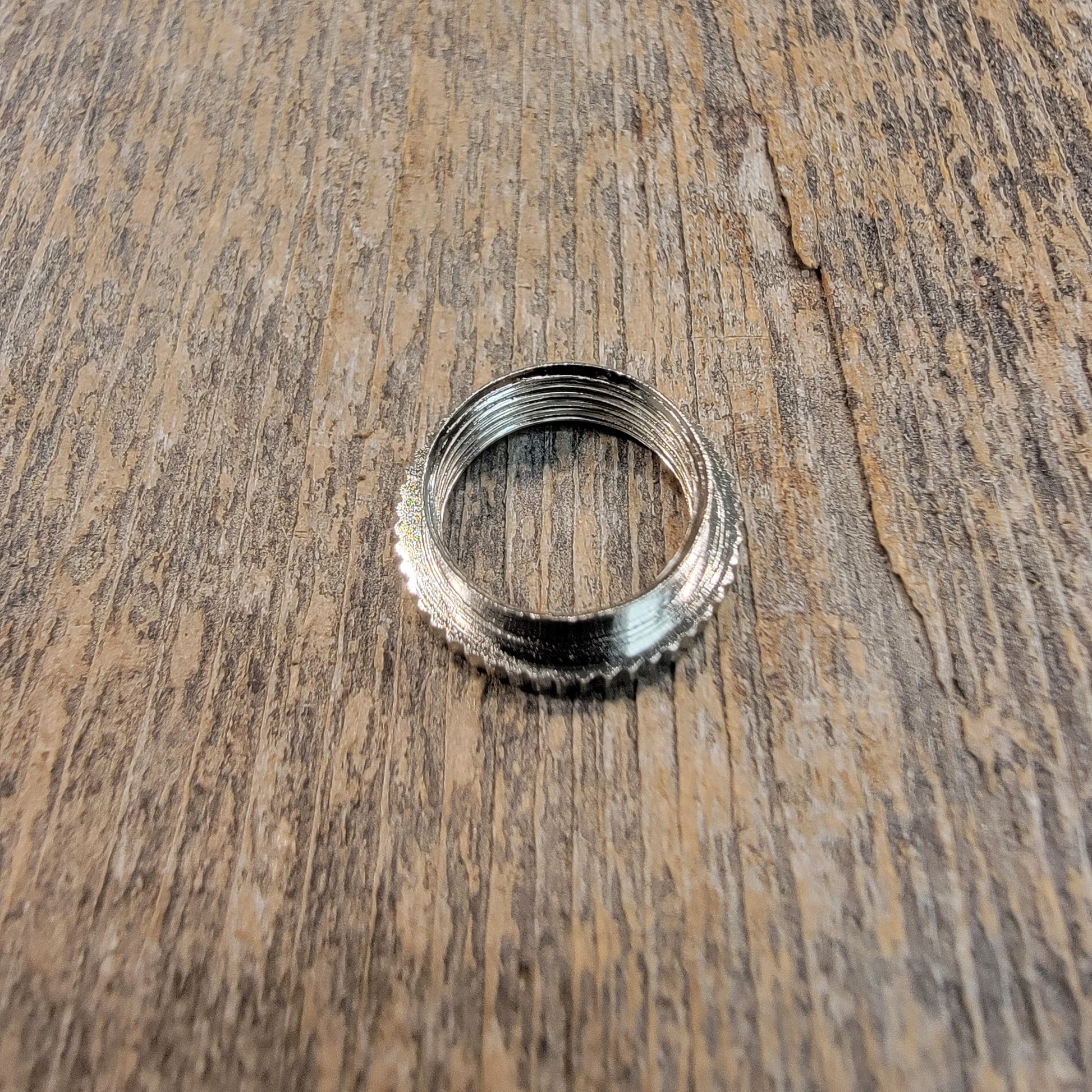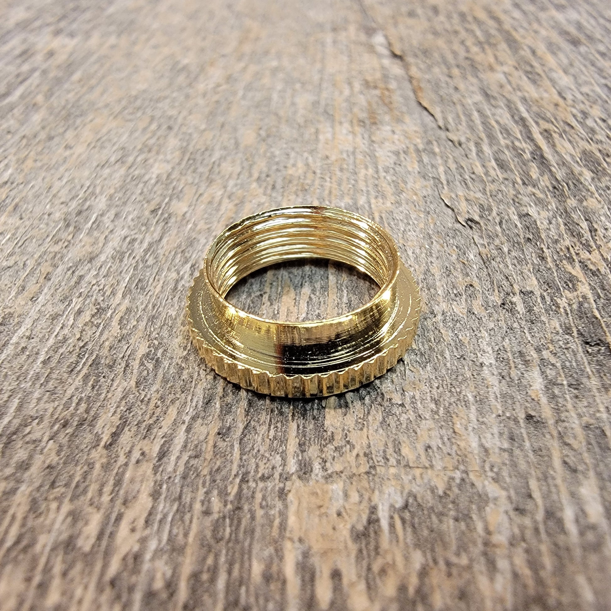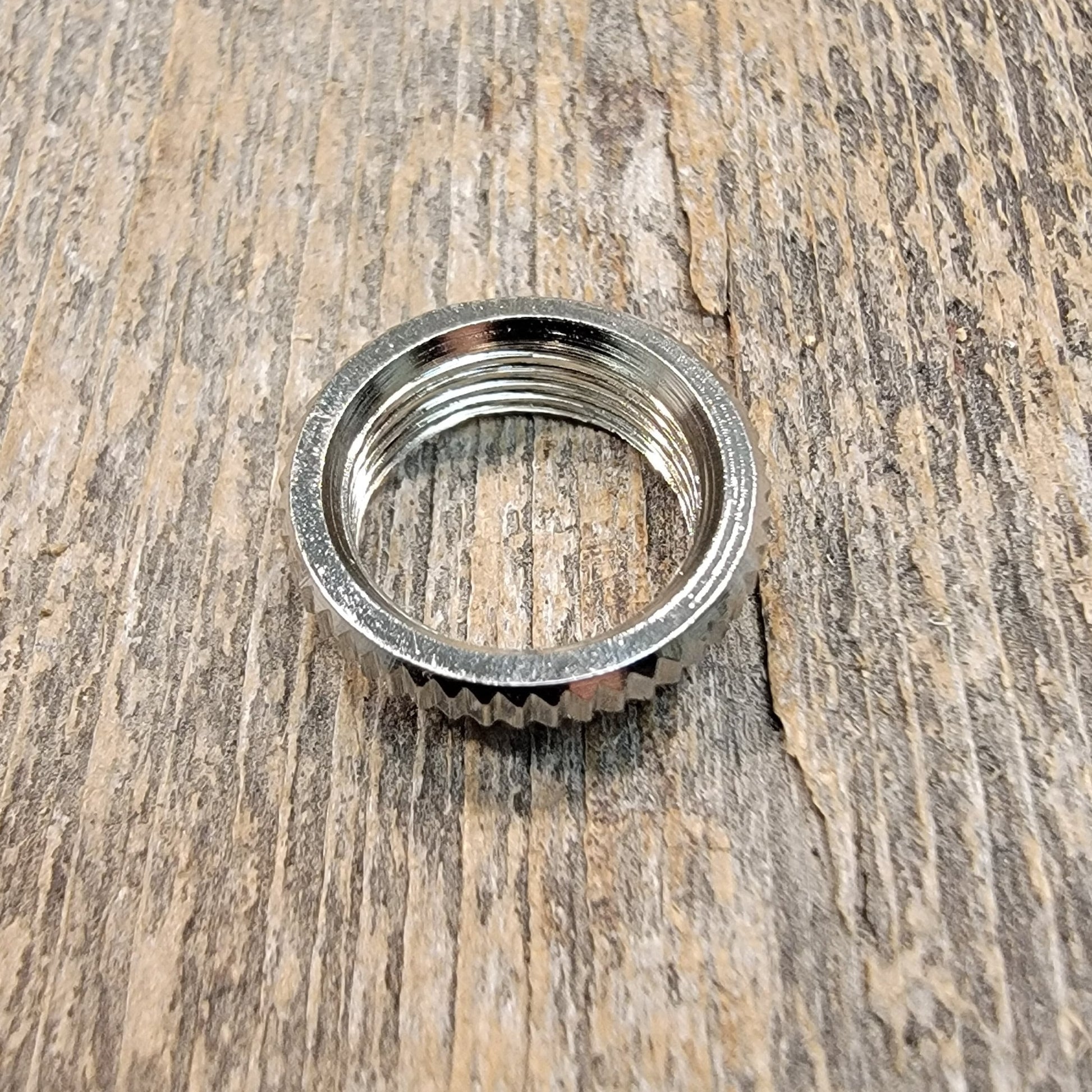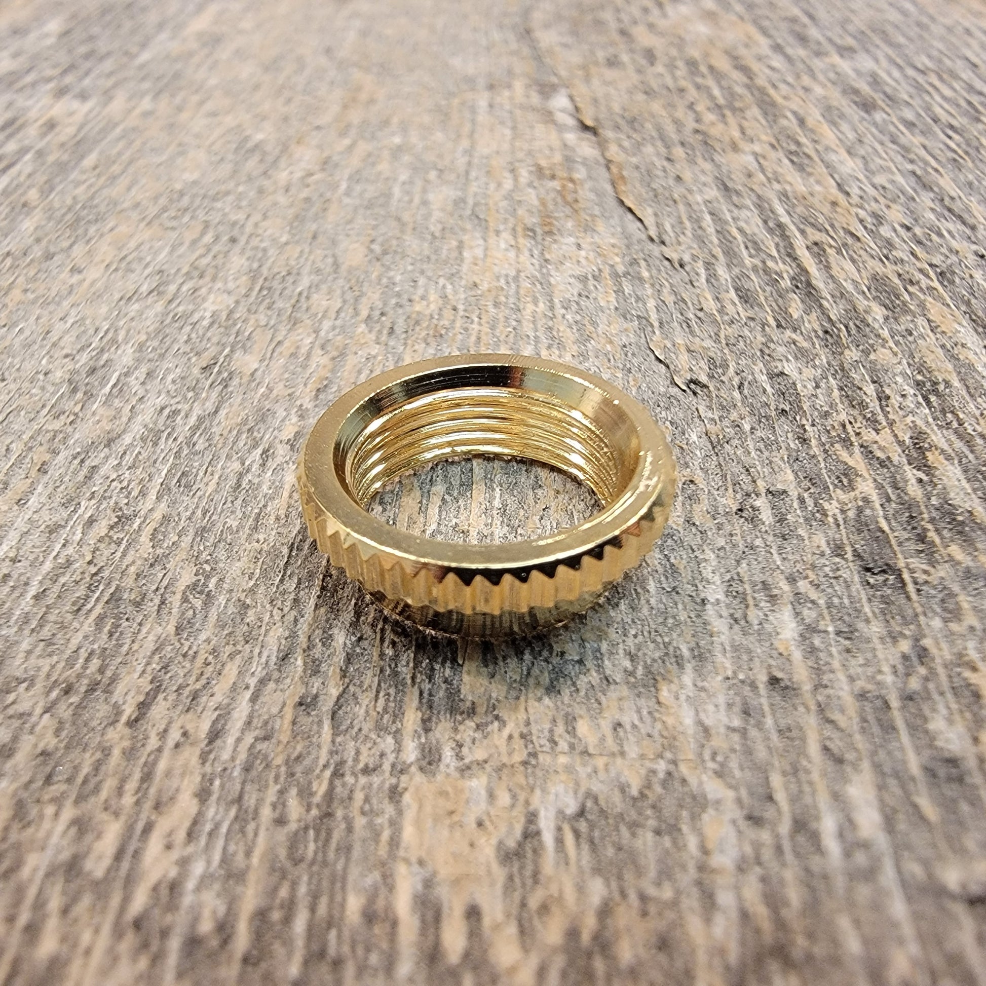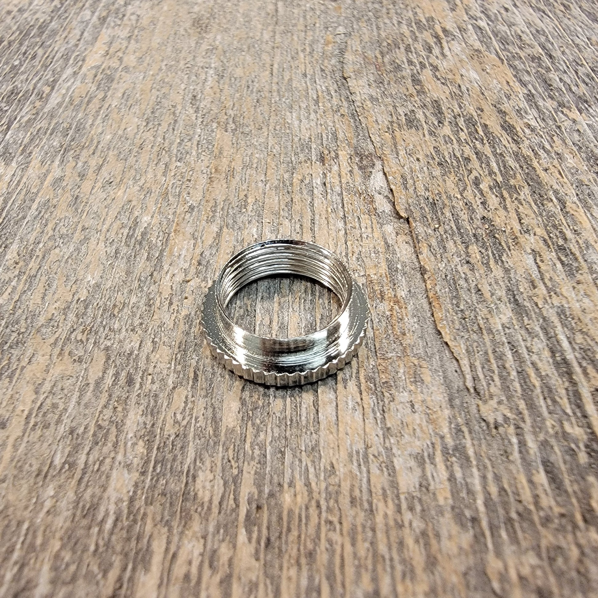 If you are changing switches on an instrument with a thicker cap, you may find you need a deeper nut to grab the threads. This nut extends 3mm below the surface of the guitar.