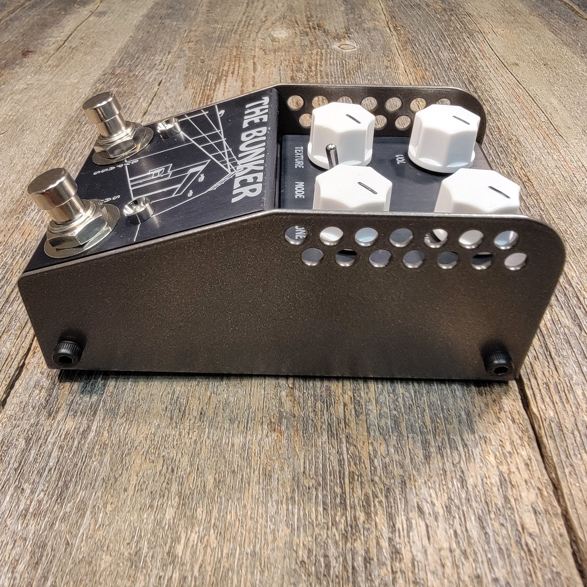 The BUNKER is a MKII version of the Brown source drive pedal. It is smaller, louder and more tonally flexible. The tonal flexibility is provided through a texture control that allows you to have whichever type of drive sound you want from original Brown Source style drive through to thicker and more harmonically rich drive. The tonestack bypass is on a footswitch for two switchable sounds as well as a three way toggle switch for further tonal sculpting.