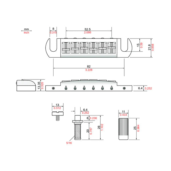 The AVT2G wraparound bridge assembly is matched with a standard cap set of SS1 Locking Studs. This set includes TonePros “Heighten & Tighten” adjustment tool for our patented Locking Studs. Our new AVT2 is currently the only locking, Piezo loadable, standard saddle, fully intonatable wraparound bridge in the world. Fits USA guitars fitted with stud mount bridges with standard center stud spacing.